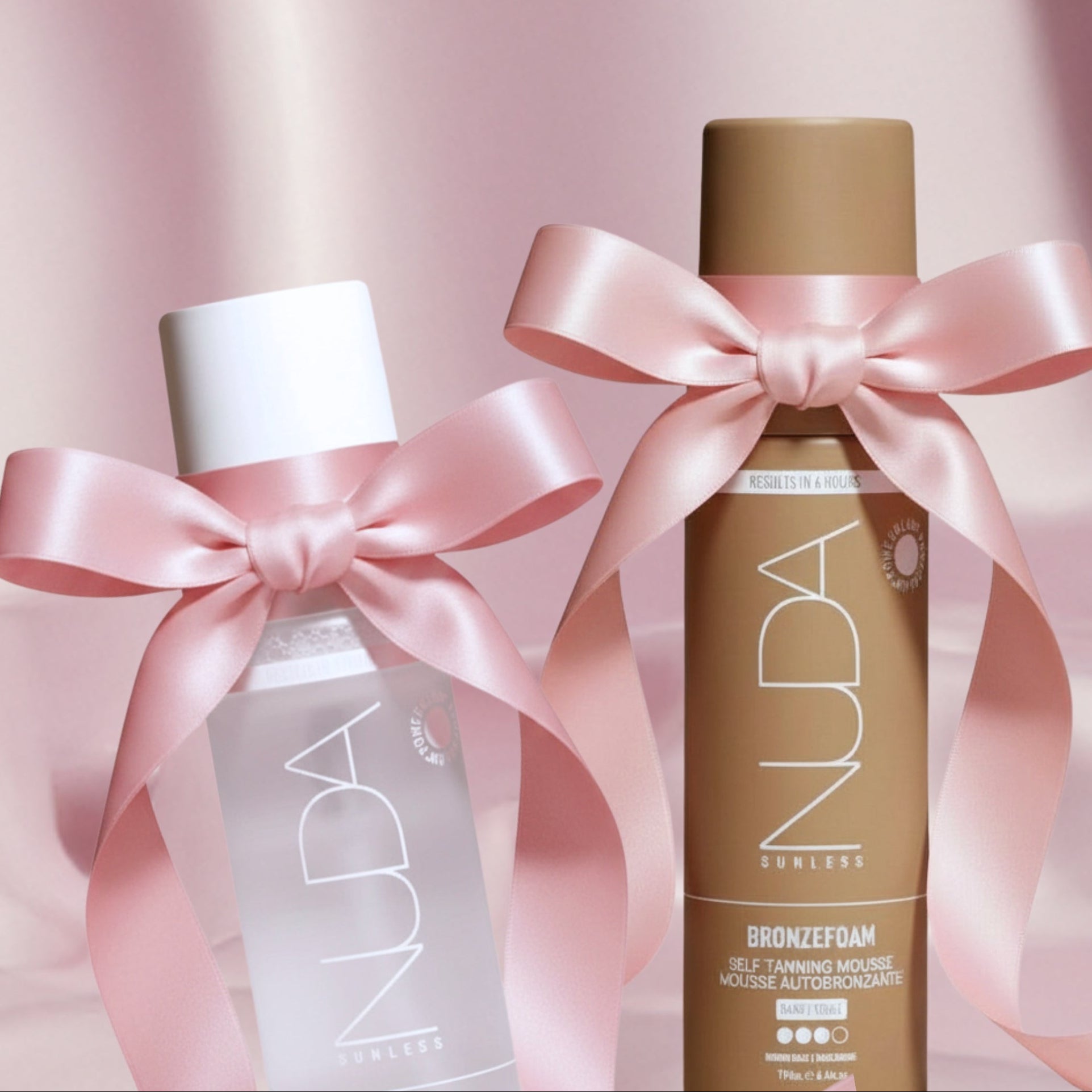 NUDA self-tanning products are crafted with clean, vegan, non-toxic ingredients. They are free from sulfates, parabens, mineral oils, gluten, dyes, and synthetic fragrance, and some products also use natural preservatives.