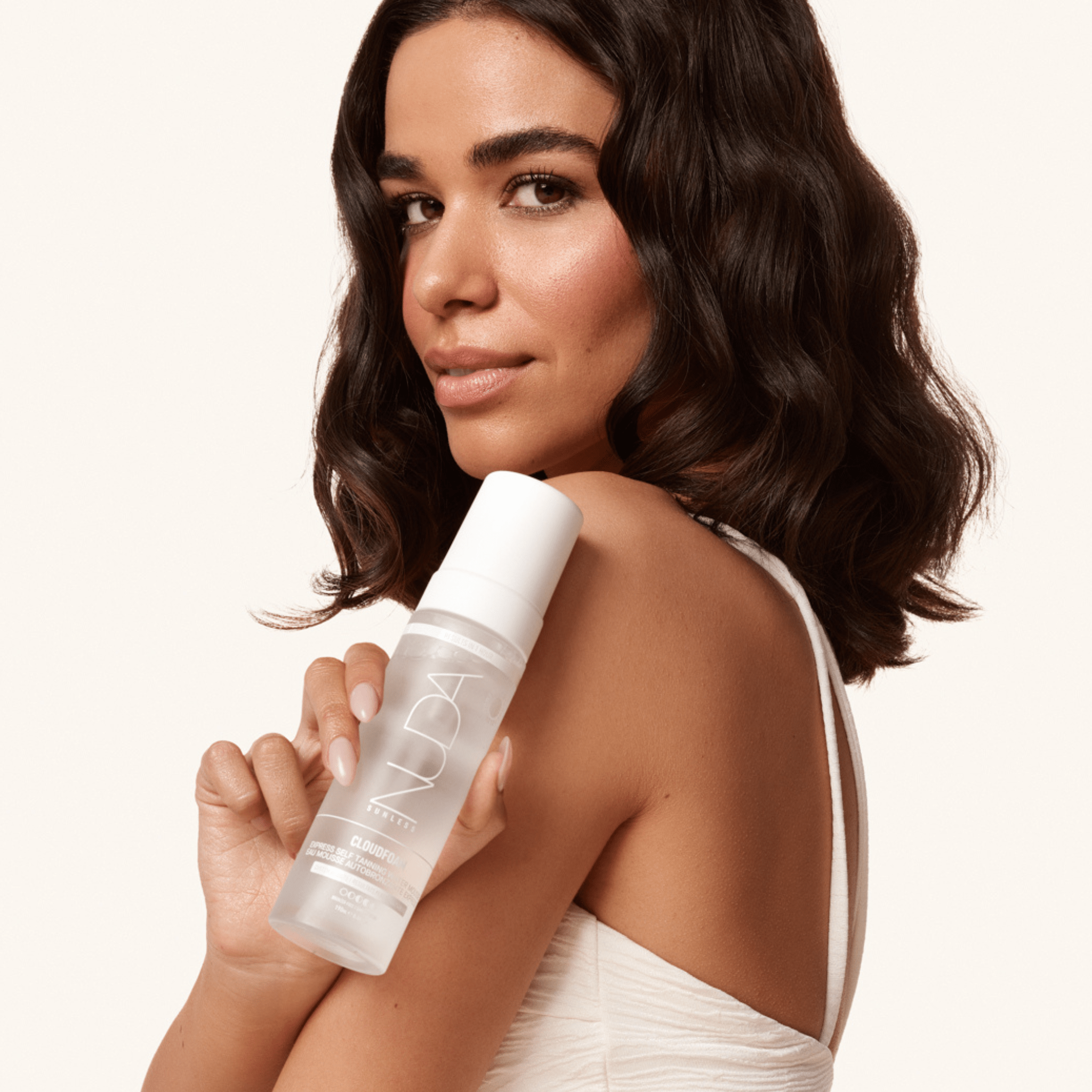 NUDA self-tanning products are crafted with clean, vegan, non-toxic ingredients. They are free from sulfates, parabens, mineral oils, gluten, dyes, and synthetic fragrance, and some products also use natural preservatives.