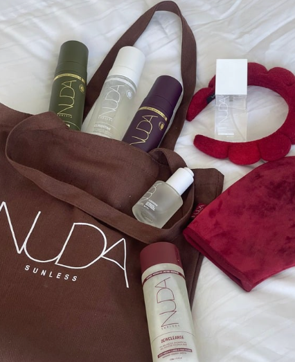 NUDA self-tanning products are crafted with clean, vegan, non-toxic ingredients. They are free from sulfates, parabens, mineral oils, gluten, dyes, and synthetic fragrance, and some products also use natural preservatives.