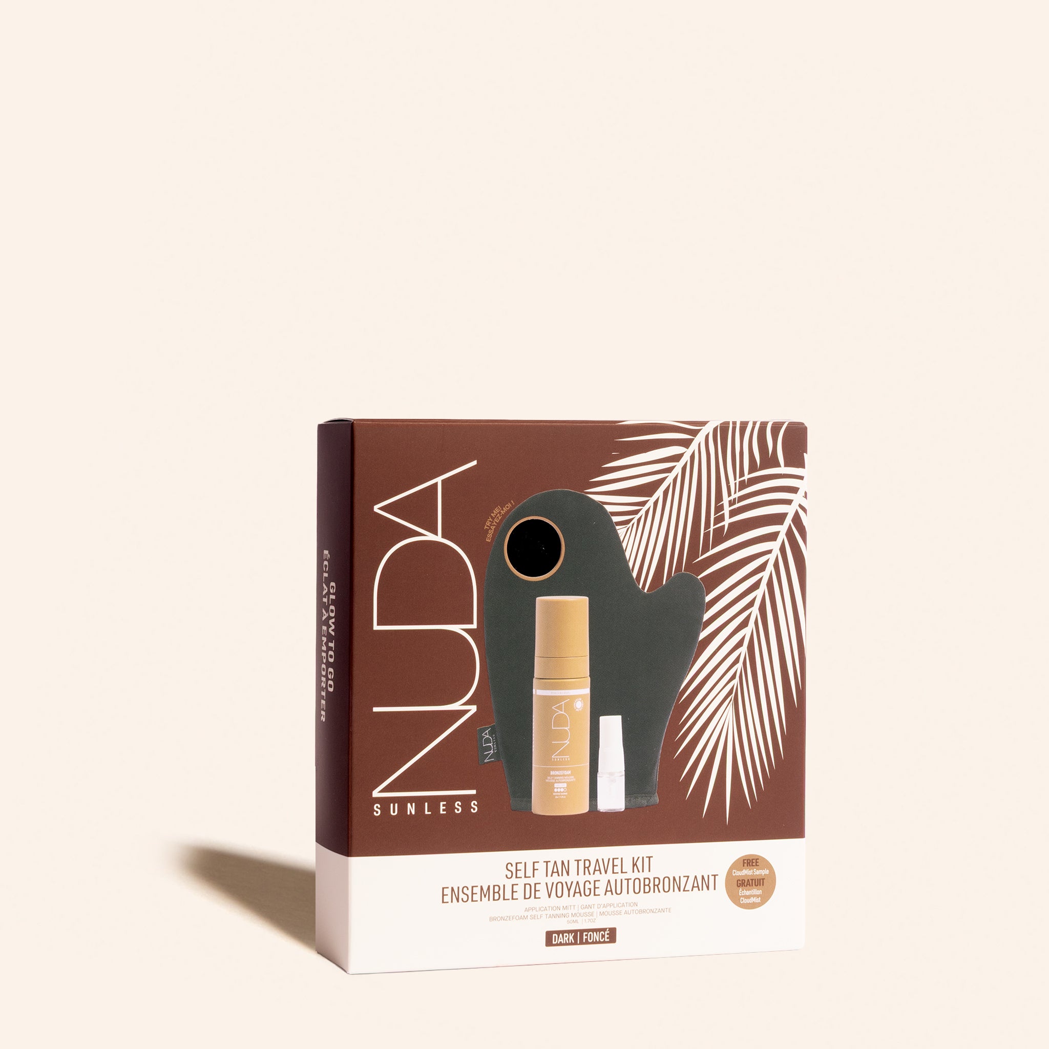 Get the ultimate holiday tan with the Nuda Holiday Glow Up Set or a flawless face with the Glow On The Go Ornament.