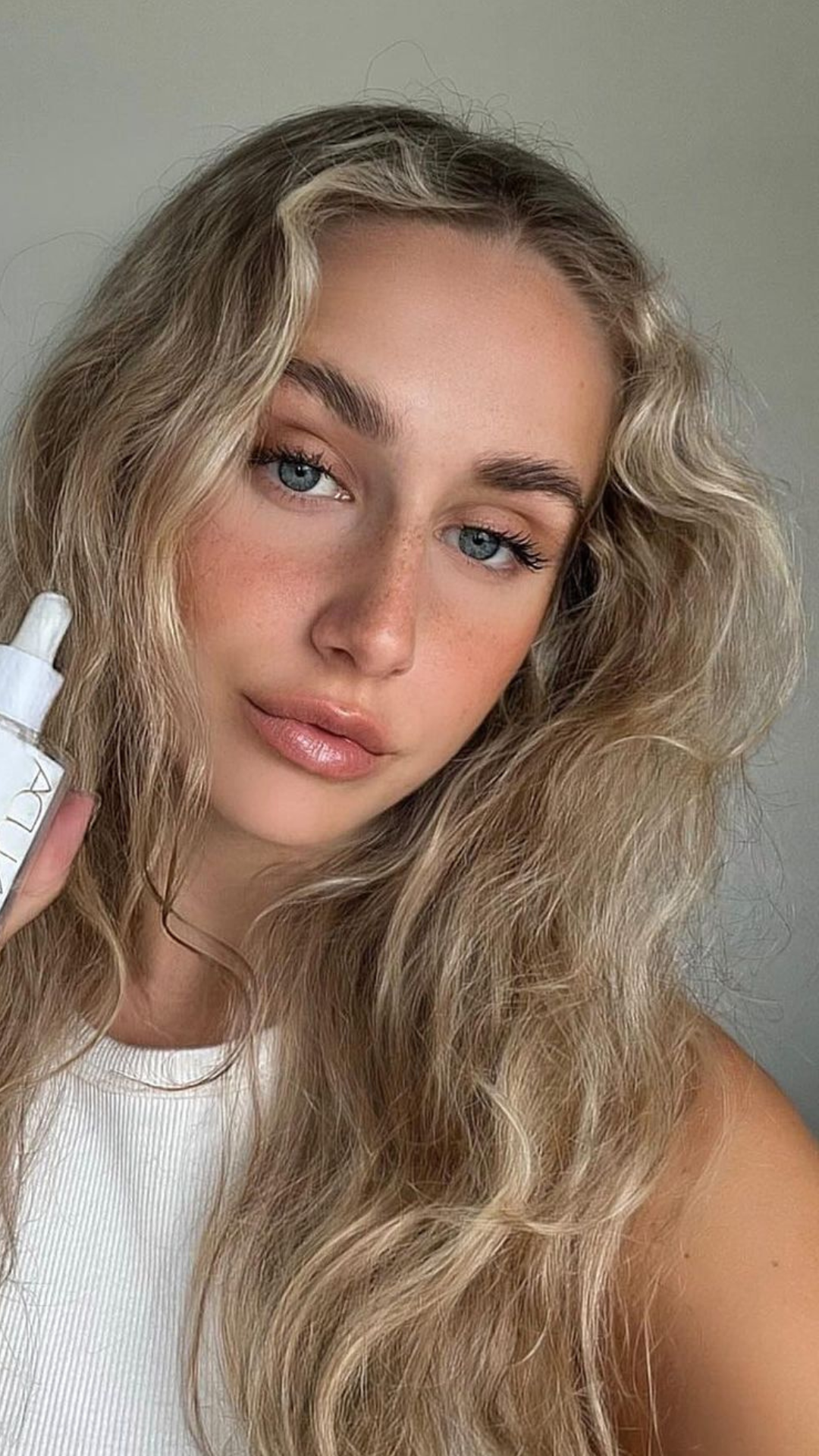 In the morning, apply Nuda’s SolarGlow™ Mineral Serum Sunscreen SPF 30.
