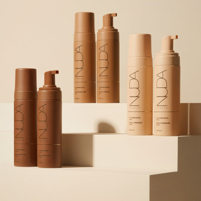 A nuda.com online exclusive set that features our new innovation ToneFoam Express Self Tanning Mousse in shade Violet with CloudMist Express Face Tan Water and our luxurious Tanning Mitt. Save 20% when you bundle!